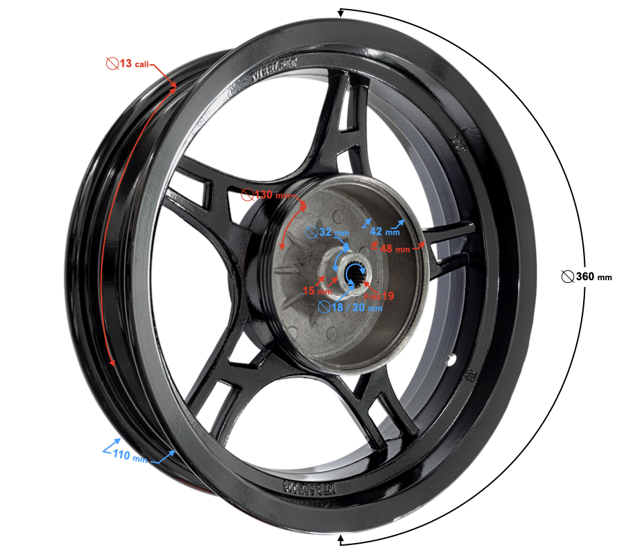 Felga tył 13-3,50 hamulec tarczowy Falcon 125 2 aluminiowa E5