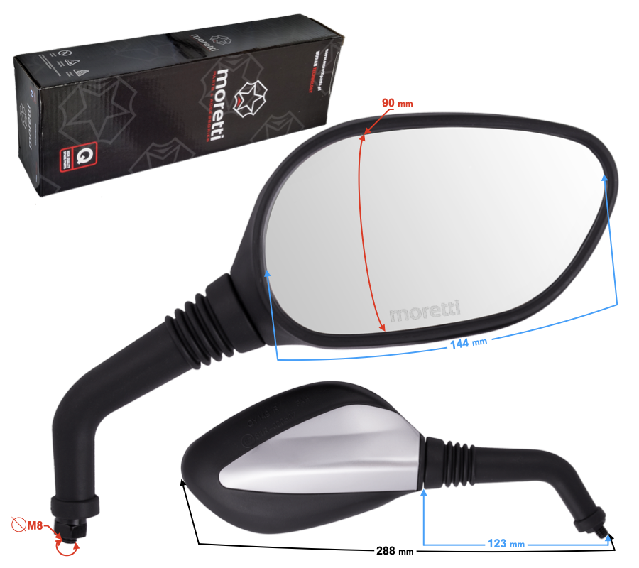 / Lusterka L+R (średnica gwintu 8mm) do skutera Rocky z homologacją