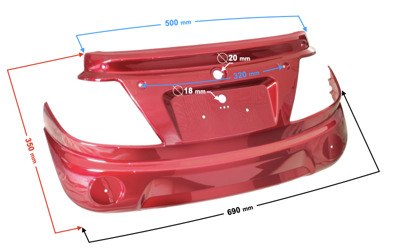 Obudowa tylna skuter Tres czerwona